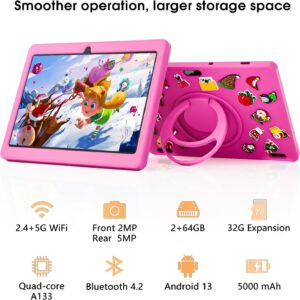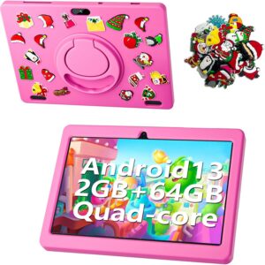Naclud 10 Inch Kids Tablet 2GB RAM 64GB ROM, Android 12 Tablet with Case, Quad-Core 1.6Ghz Processor, 1280 * 800 IPS, 2MP+5MP Camera, 6000mAh, GPS, WiFi, Bluetooth(Pink)