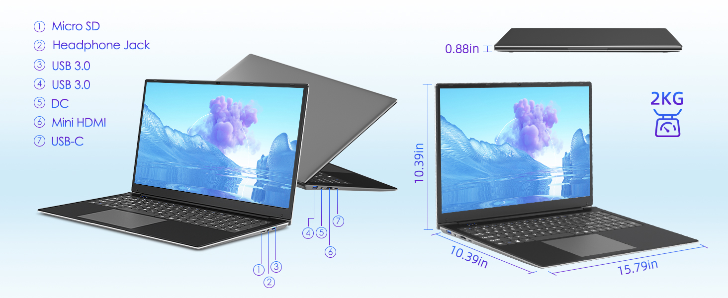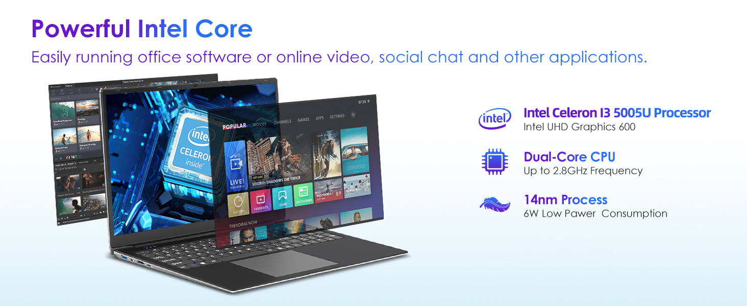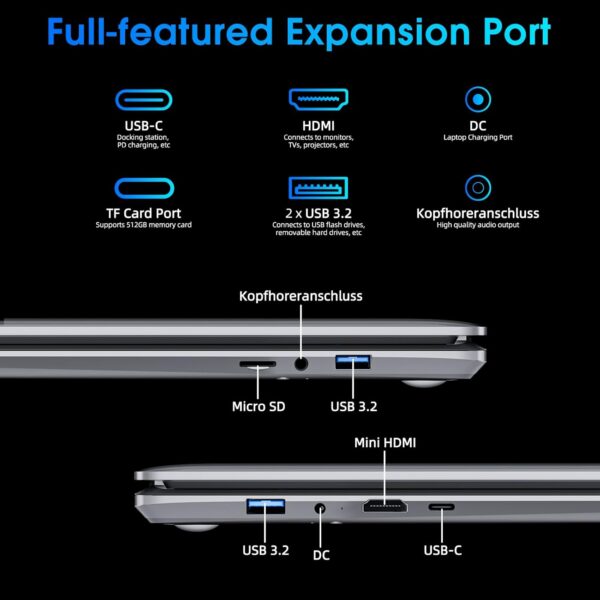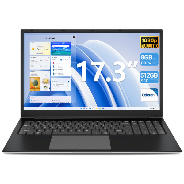 17.3 Inch Laptops Computer, 8GB DDR4 512GB SSD Laptop Notebook with Celeron N4020 Processor (up to 2.8 GHz), Webcam, Mini HDMI, Type-C, 8000mAh, USB3.2 * 2(Black)