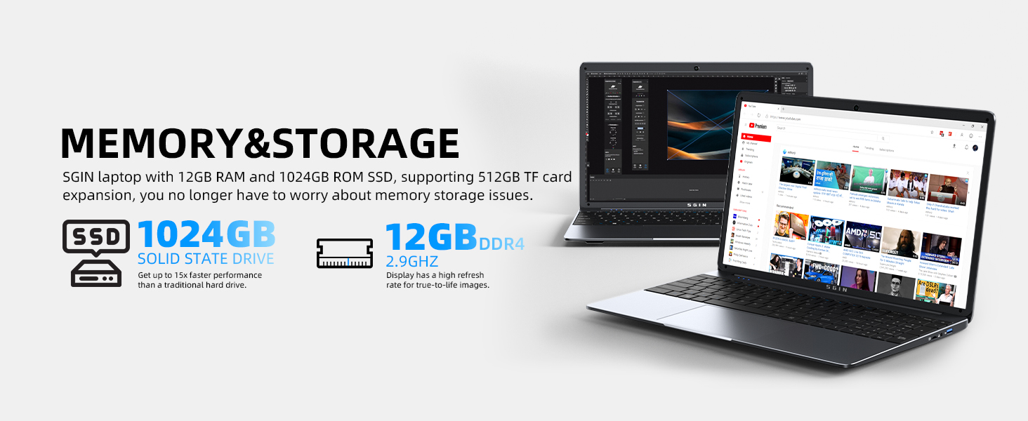 Naclud Laptop, 12GB DDR4 512GB SSD Laptops Computer with 15.6 Inch IPS FHD Display, Celeron N5095 Quad Core Processor, 1920 * 1080, Dual Band WiFi, BT 4.2, Mini HDMI, Up to 512GB TF Card Expansion