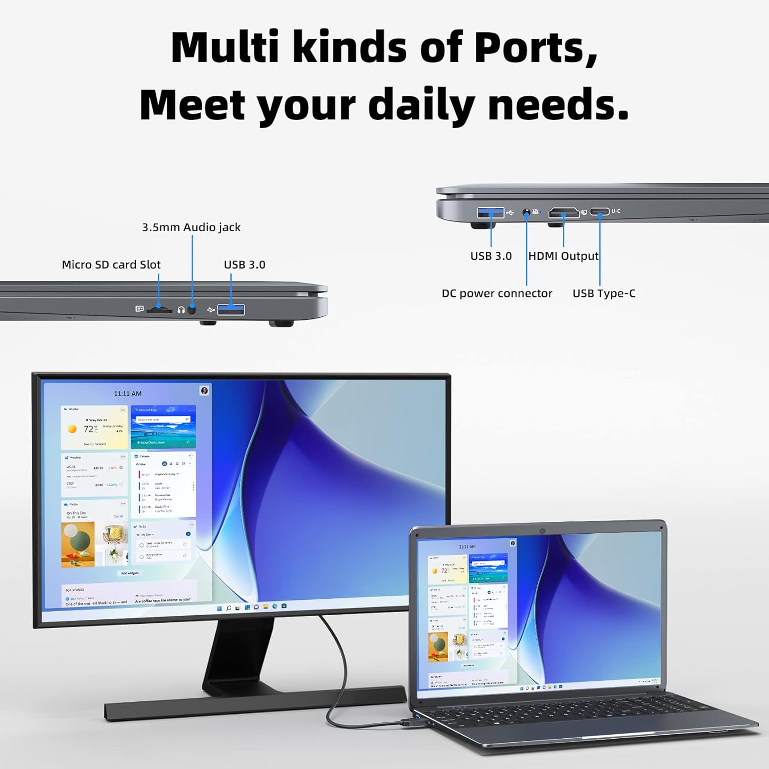 Naclud 15.6 Inch Laptops, Laptop Computer with 24GB RAM 512GB SSD, Celeron N5095 Quad-Core(Up to 2.9GHz), 5000mAh Battery, 5G WiFi, USB 3.0, Webcam, Type-C, Mini HDMI (Silver)