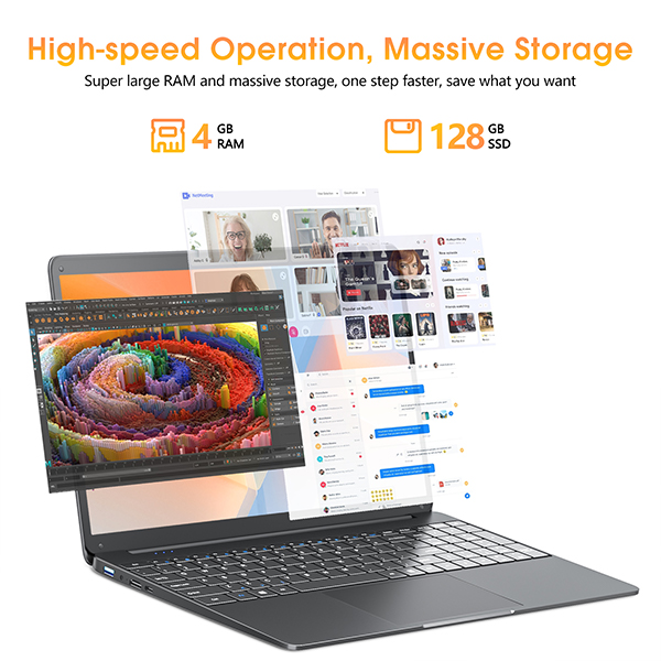 - EFFICIENT PERFORMANCE: Equipped with 4GB high-speed DDR4 memory, 128GB SSD storage and faster, smoother and energy-efficient performance, this laptop can easily handle complex tasks. Supports the extension of the TF card of 512 GB and the 512 GB SSD can be replaced with a maximum SSD of 1 TB.