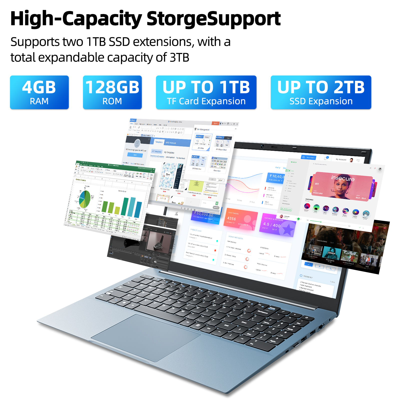 Naclud 15.6″ Windows 11 Laptop wih 4GB DDR4 128GB SSD Computer with 4 Core Celeron N5095, Support 2*1024GB SSD Slot Expansion, 1920*1080 FHD IPS Screen