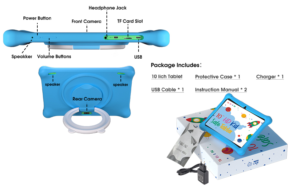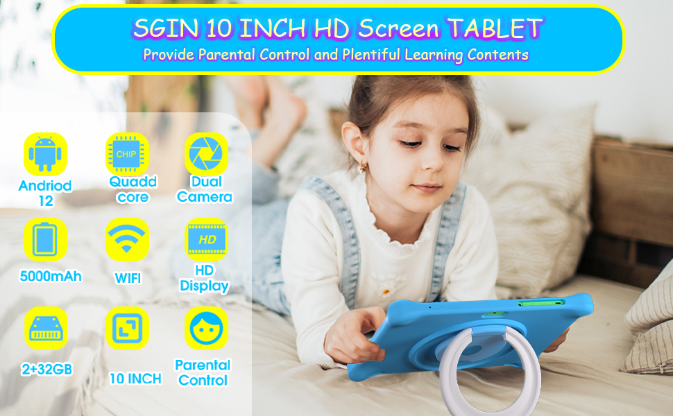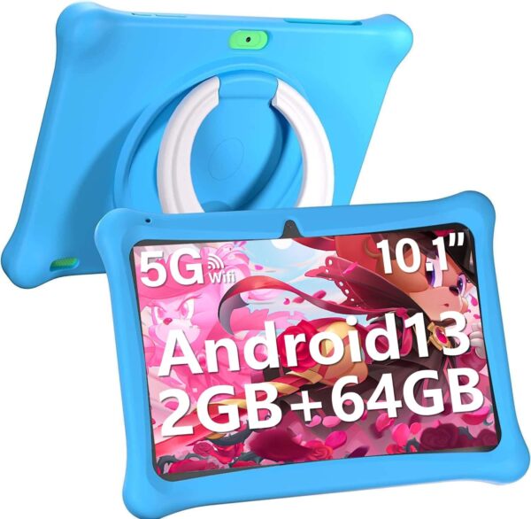 Naclud Kids Tablet, 10.1 Inch Android 13 Tablet for Kids, 2+2GB RAM 64GB ROM Kids Tablets with Case, Dual Camera, WiFi, Educational Games, Kidoz Pre Installed, Parental Control APP, Blue