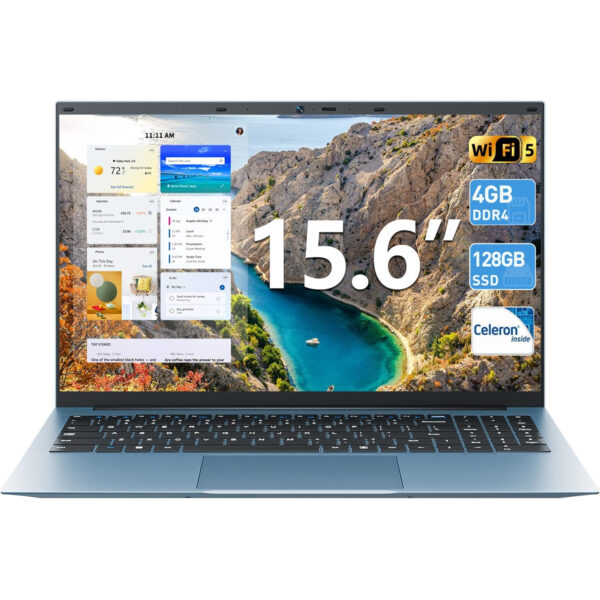 Naclud 15.6 Inch Laptop Computer, Windows 11 Laptop, 4GB DDR4 128GB SSD, Celeron N4000 Processor, 180° Open Angle, HDMI, USB 3.2, 7000mAh, BT5.0, Type-C, for Business Student