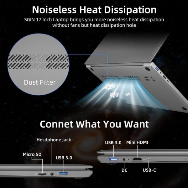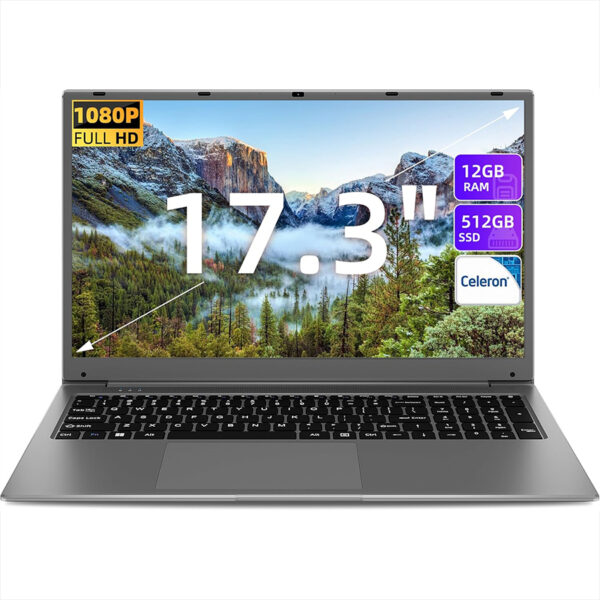 / Naclud Windows 11 Laptops, 17.3 Inch Laptop Computer with Celeron Quad-Core Processor, 12GB DDR4 512GB SSD, Expandable 1TB, Type-C, 60800mWh Battery, Wi-Fi 5, BT4.2, Mini HDMI, Business and Students