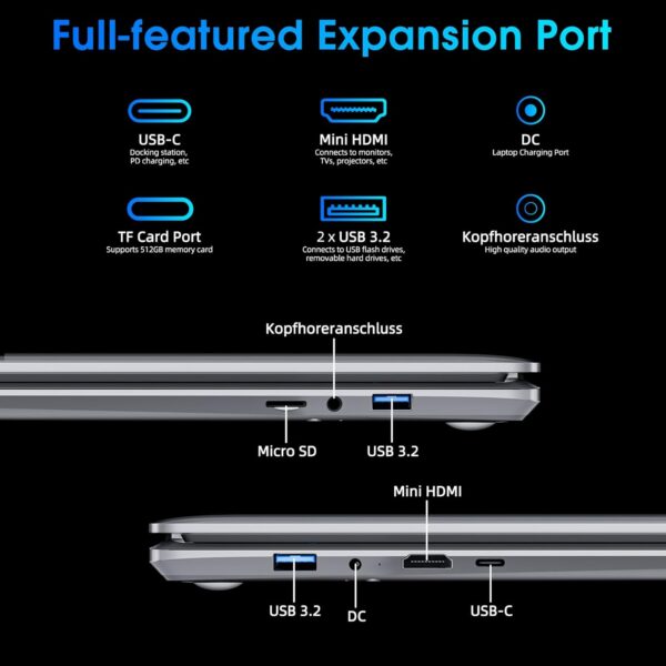 Naclud 15.6 Inch Laptops, Laptop Computers Students Business with 36GB RAM 128GB EMMC+1024GB SSD, Celeron N5095 Quad-Core(Up to 2.9GHz), 11 Home, WiFi 6, USB 3.2, HDMI, Type-C, 7000mAh Battery(Gray)