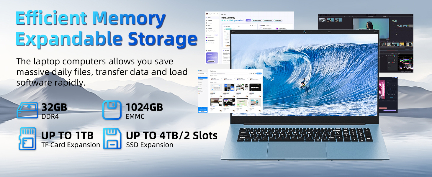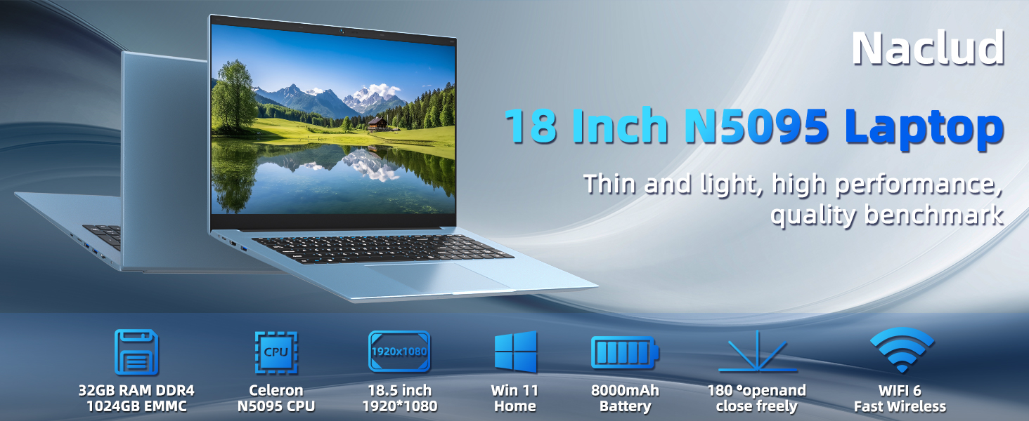 Naclud 18.5 Inch Laptops, Laptop Computers with 32GB RAM 1024GB SSD, Windows 11 Computer, Celeron N5095 Quad-Core, WiFi 6, BT5.2, USB 3.2 * 3, HDMI, Type-C, 8000mAh, Portable Notebook(Gray)